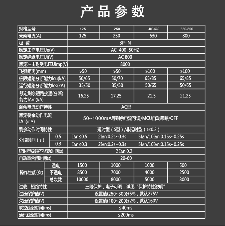 ●長延時、短延時和瞬時三段保護,采用電子式脫扣,與電源電壓無關;