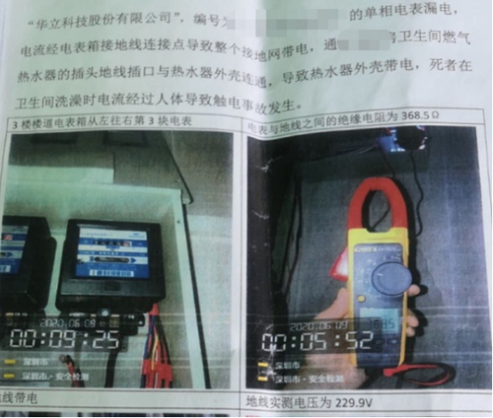 事故的直接原因是3樓電表箱從左往右第3塊電表漏電。該單相電表發(fā)生漏電,電流經(jīng)電表箱接地線連接點(diǎn)導(dǎo)致整個(gè)接地網(wǎng)帶電,通過房間衛(wèi)生間燃?xì)鉄崴鞯牟孱^地線插口與熱水器外殼連通,導(dǎo)致熱水器外殼帶電,死者在衛(wèi)生間洗澡時(shí)電流經(jīng)過人體,導(dǎo)致觸電事故發(fā)生。調(diào)查報(bào)告顯示,事發(fā)樓棟還存在未設(shè)置總漏電保護(hù)開關(guān)的情況,樓棟總開關(guān)至房間小電箱之間的線路、計(jì)量電表沒有設(shè)置漏電保護(hù)開關(guān),這段線路的漏電保護(hù)處于裸狀態(tài)。此外樓棟的接地電阻也不符合要求,接地線安裝在沒有檢測(cè)確認(rèn)接地電阻值符合要求的前提下盲目投入使用,導(dǎo)致隱患長(zhǎng)期存在。